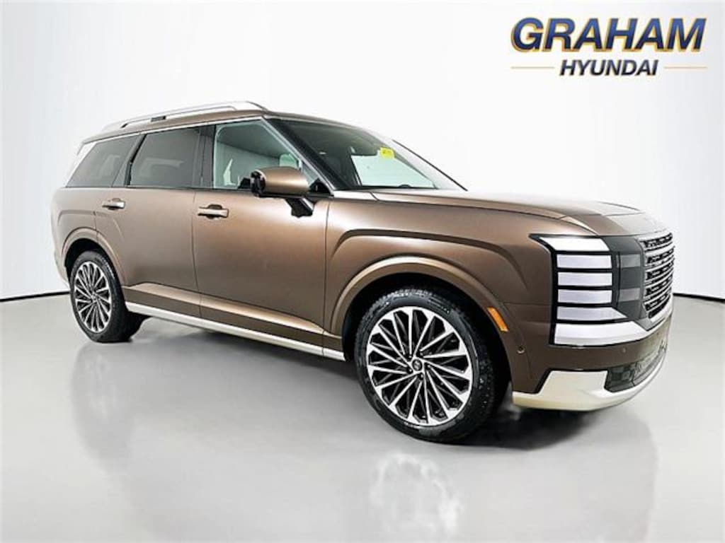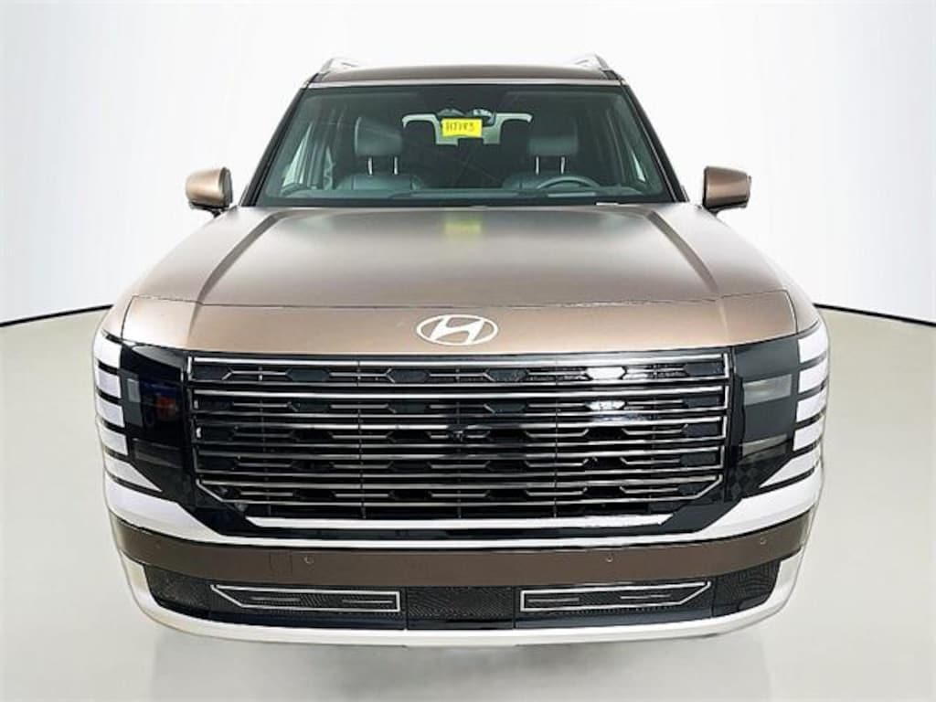 Palisade Hybrid Calligraphy, 4D Sport Utility, 2.5L Turbocharged GDI 4-Cylinder Hybrid, 6-Speed Automatic, AWD, EARTHY BRASS MA, Black Leather, 100W Charging Cable, 14 Speakers, 4-Wheel Disc Brakes, ABS brakes, Alloy wheels, AM/FM radio: SiriusXM, Apple CarPlay & Android Auto, Audio memory, Auto High-beam Headlights, Auto-dimming door mirrors, Auto-dimming Rear-View mirror, Auto-leveling suspension, Automatic temperature control, Brake assist, Bumpers: body-color, Cargo Cover, Cargo Net, Cargo Tray, Delay-off headlights, Electronic Stability Control, Emergency communication system: None, Exterior Parking Camera Rear, Four wheel independent suspension, Front anti-roll bar, Front dual zone A/C, Fully automatic headlights, Garage door transmitter: HomeLink, Genuine wood console insert, Genuine wood dashboard insert, Heads-Up Display, Heated and Ventilated Front Bucket Seats, Heated door mirrors, Heated front seats, Heated rear seats, Heated steering wheel, HVAC memory, Knee airbag, Low tire pressure warning, Memory seat, Navigation System, Occupant sensing airbag, Option Group 01, Panic alarm, Passenger door bin, Power driver seat, Power Liftgate, Power steering, Power windows, Premium Nappa Leather Seat Trim, Radio data system, Radio: Infotainment Navigation System, Rain sensing wipers, Rear air conditioning, Rear window wiper, Remote keyless entry, Security system, Speed control, Spoiler, Steering wheel mounted audio controls, Traction control, Turn signal indicator mirrors, Variably intermittent wipers, Ventilated front seats, Ventilated rear seats, Wheels: 21" x 8.5J Alloy. 2026 Hyundai Palisade Hybrid Calligraphy $1,777 off MSRP!